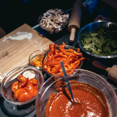 An langen Tischen gestalteten Kinder fantasievolle Papierpizzen, hörten aus dem Buch „Pizzakatze“ oder lasen selbst. In der Küche wurde anschließend gemeinsam gekocht und gegessen: echte Pizzen, oft inspiriert von den zuvor gestalteten Entwürfen. Ergänzt wurde das Programm durch weitere kreative Aktionen wie Nähen, Sticken, das Bemalen von Tischdecken sowie Fotoshootings.