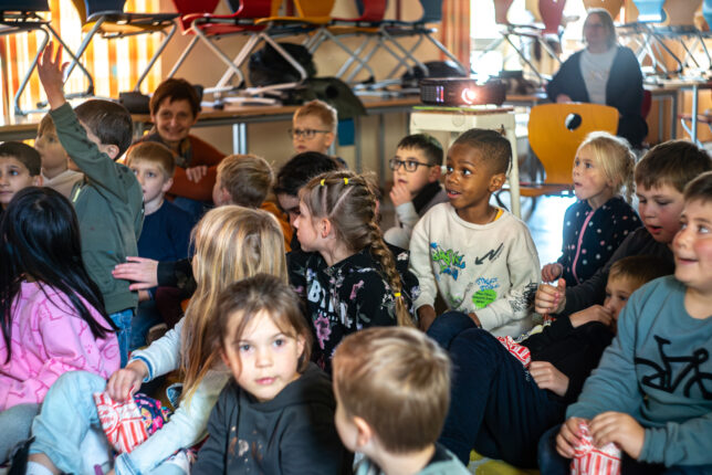 Zum bundesweiten Tag der Bibliotheken war das Festival erstmals zwei Tage lang vor Ort. In Kooperation mit der Stadtbücherei und der Buchhandlung van Wahden konnten Grundschüler*innen der Dhünntalschule einen besonderen Vormittag voller Worte, Bücher und kreativer Impulse erleben.